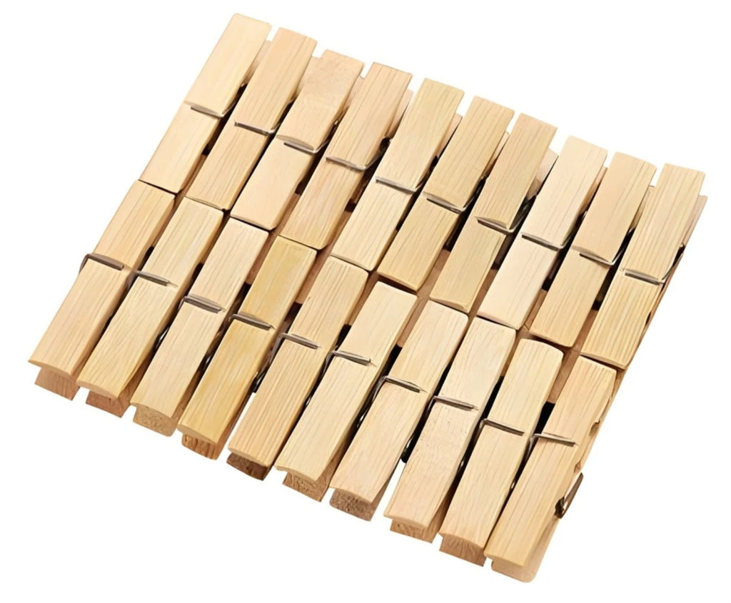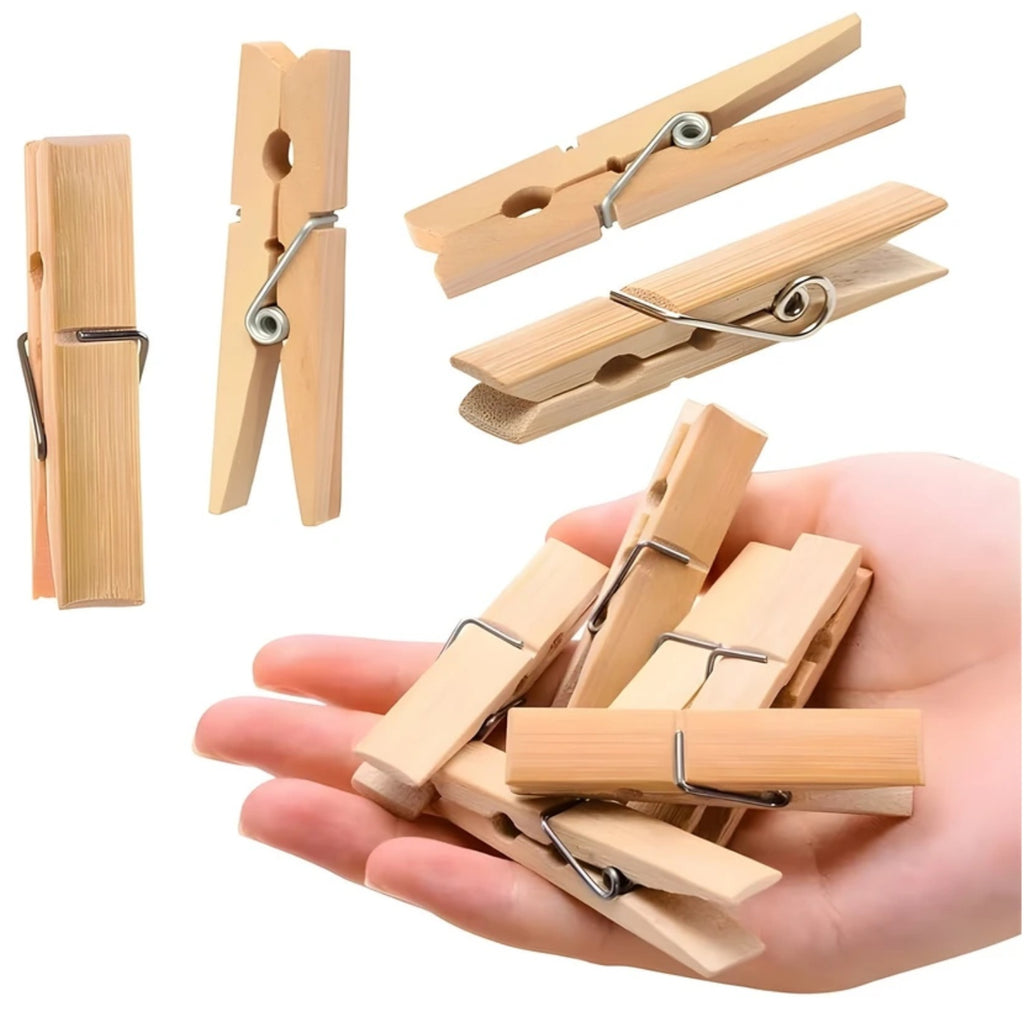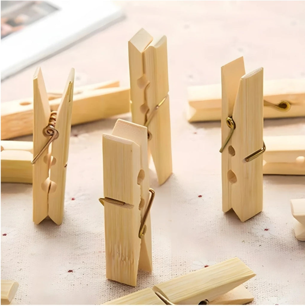 Durable and eco-friendly wooden cloth clips designed to securely hold clothes on a drying line. Made from high-quality wood with a sturdy spring mechanism, they provide a firm grip while being gentle on fabrics. Perfect for everyday laundry use, these clips are reusable, long-lasting, and a sustainable alternative to plastic clips.
