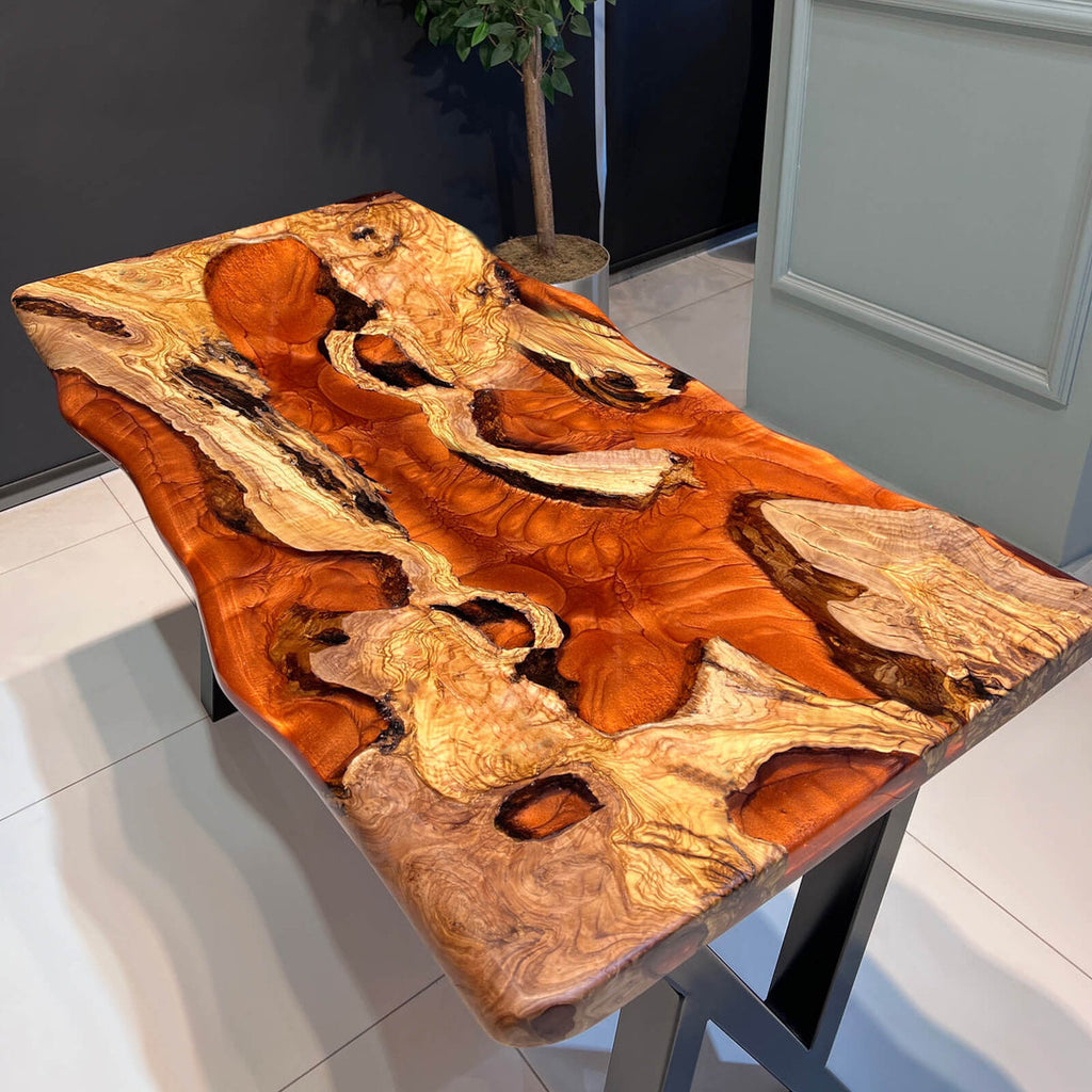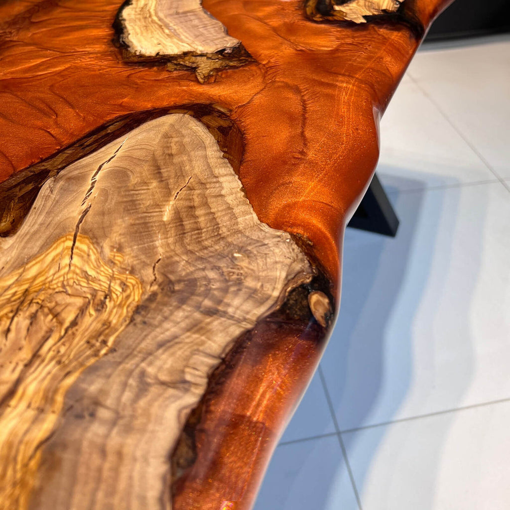 A striking blend of natural wood and crystal-clear resin, this conference table is both durable and artistic. Its polished surface highlights the organic wood grain with a smooth resin finish, creating a unique centerpiece that elevates any modern meeting space.