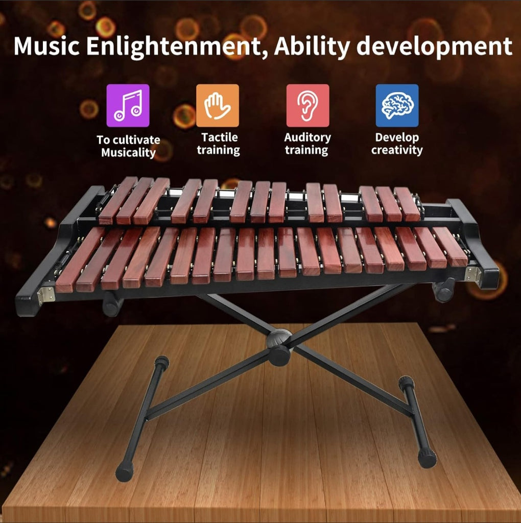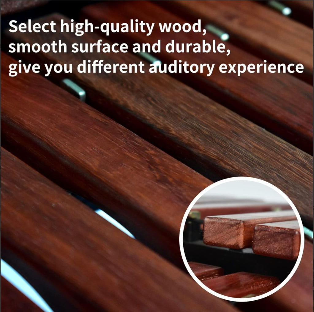 A xylophone is a percussion instrument made of wooden bars of varying lengths, arranged in a keyboard-like layout. Each bar produces a distinct pitch when struck with mallets, creating bright, lively tones often used in orchestras, bands, and music education.