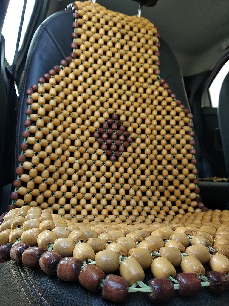 A comfortable car seat cushion made with interlinked wooden beads, designed to provide ventilation and a gentle massaging effect while driving. The beaded surface promotes air circulation, keeping the seat cool and reducing sweat during long journeys. Durable and easy to fit on most car seats, this cushion enhances comfort, posture, and driving experience.