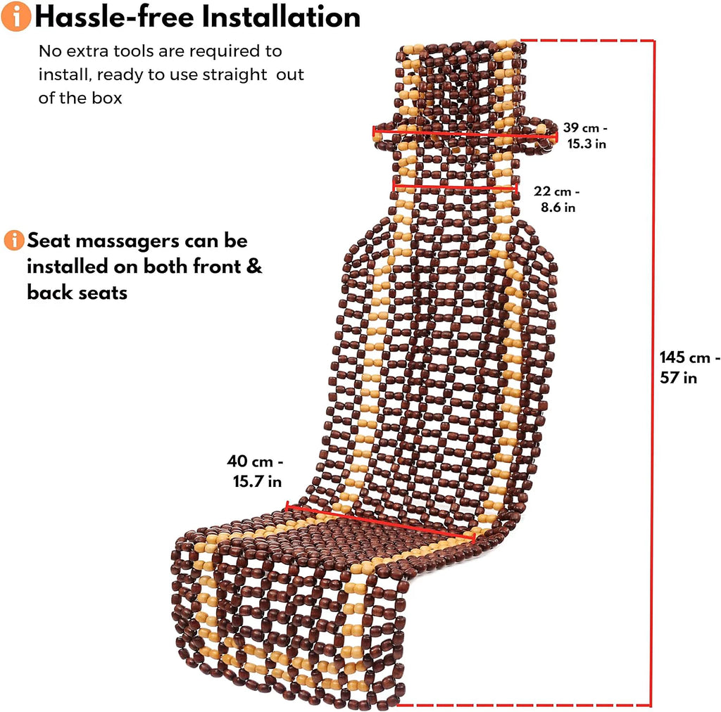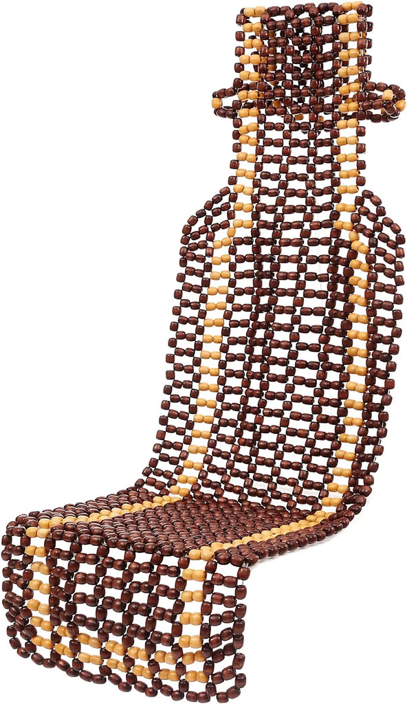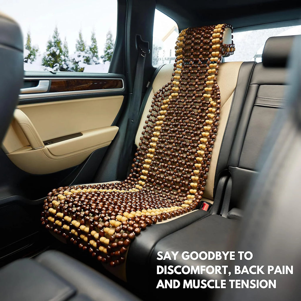 A comfortable car seat cushion made with interlinked wooden beads, designed to provide ventilation and a gentle massaging effect while driving. The beaded surface promotes air circulation, keeping the seat cool and reducing sweat during long journeys. Durable and easy to fit on most car seats, this cushion enhances comfort, posture, and driving experience.