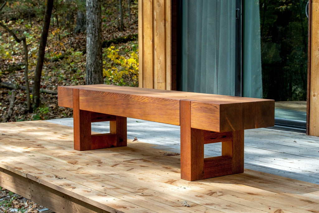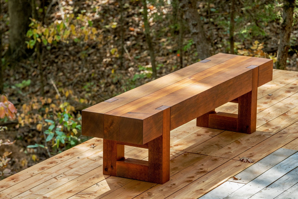 A Japanese short bench with a low, minimalist design, crafted from natural wood for simple elegance and versatile use.
