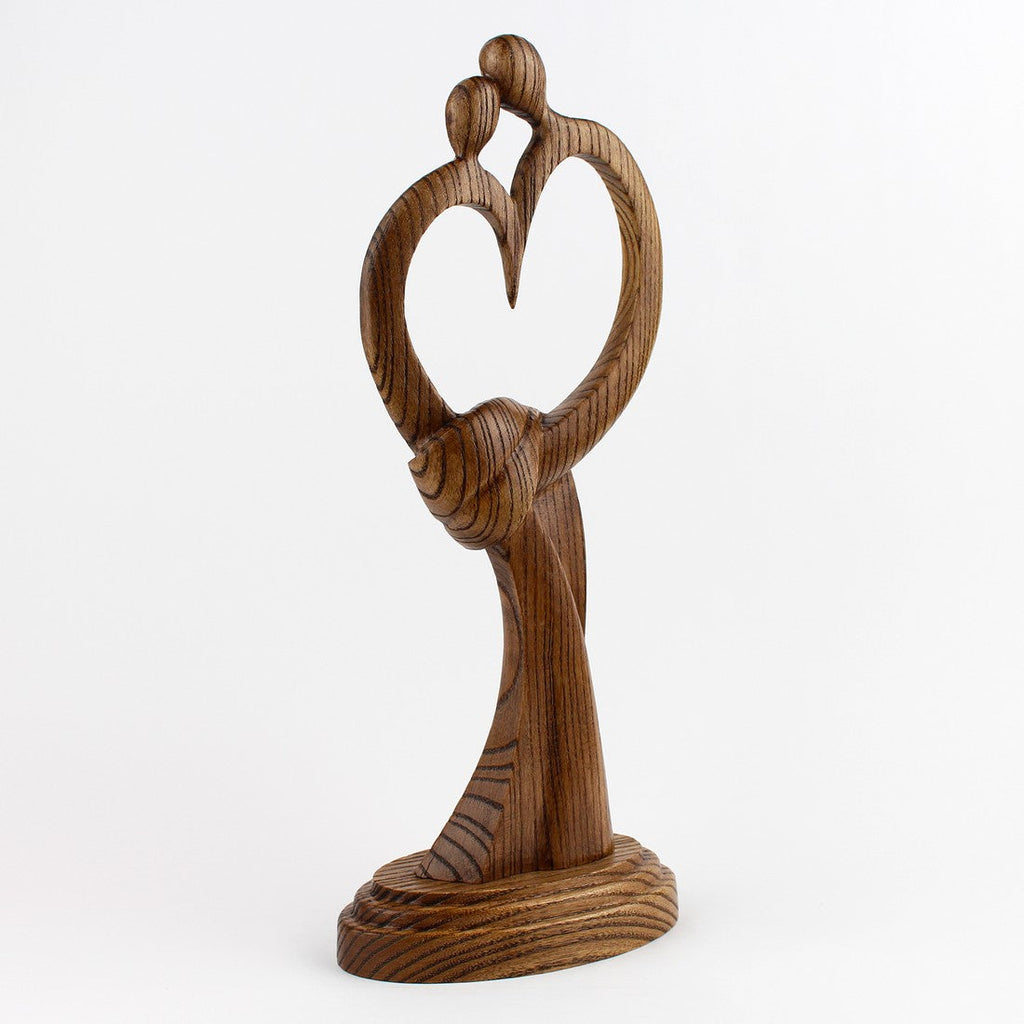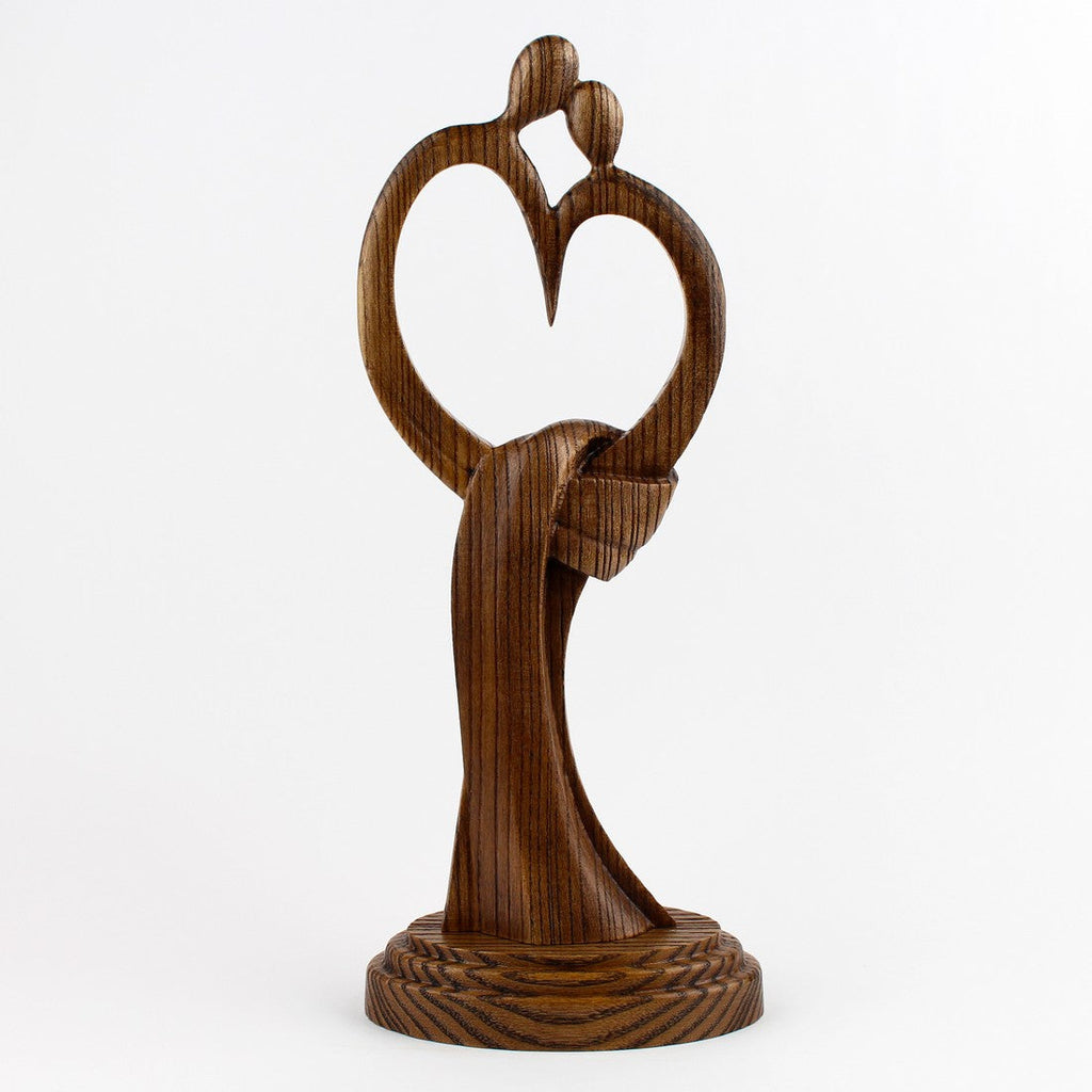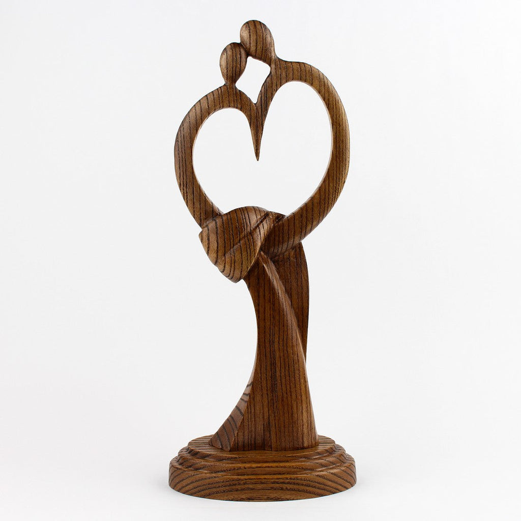 A beautifully handcrafted wooden sculpture featuring an abstract couple forming the shape of a heart. With smooth curves and a polished natural wood finish, it symbolizes love, unity, and togetherness. Mounted on a sturdy round base, this elegant piece makes a meaningful decorative accent for homes, weddings, or as a thoughtful gift for loved ones.