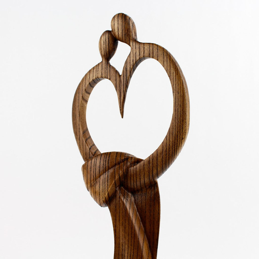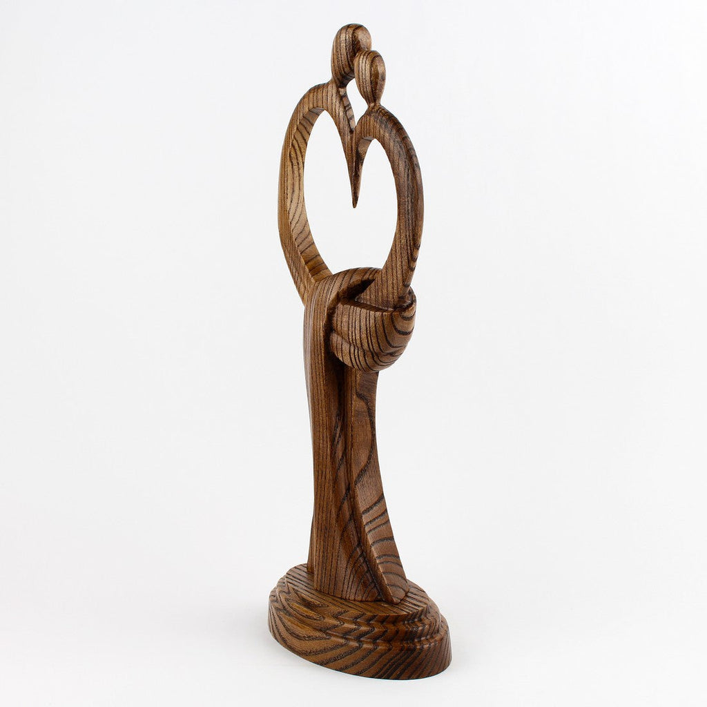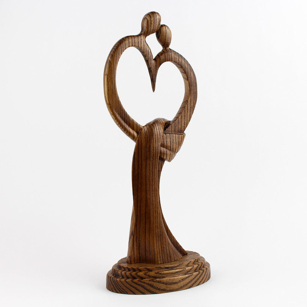 A beautifully handcrafted wooden sculpture featuring an abstract couple forming the shape of a heart. With smooth curves and a polished natural wood finish, it symbolizes love, unity, and togetherness. Mounted on a sturdy round base, this elegant piece makes a meaningful decorative accent for homes, weddings, or as a thoughtful gift for loved ones.
